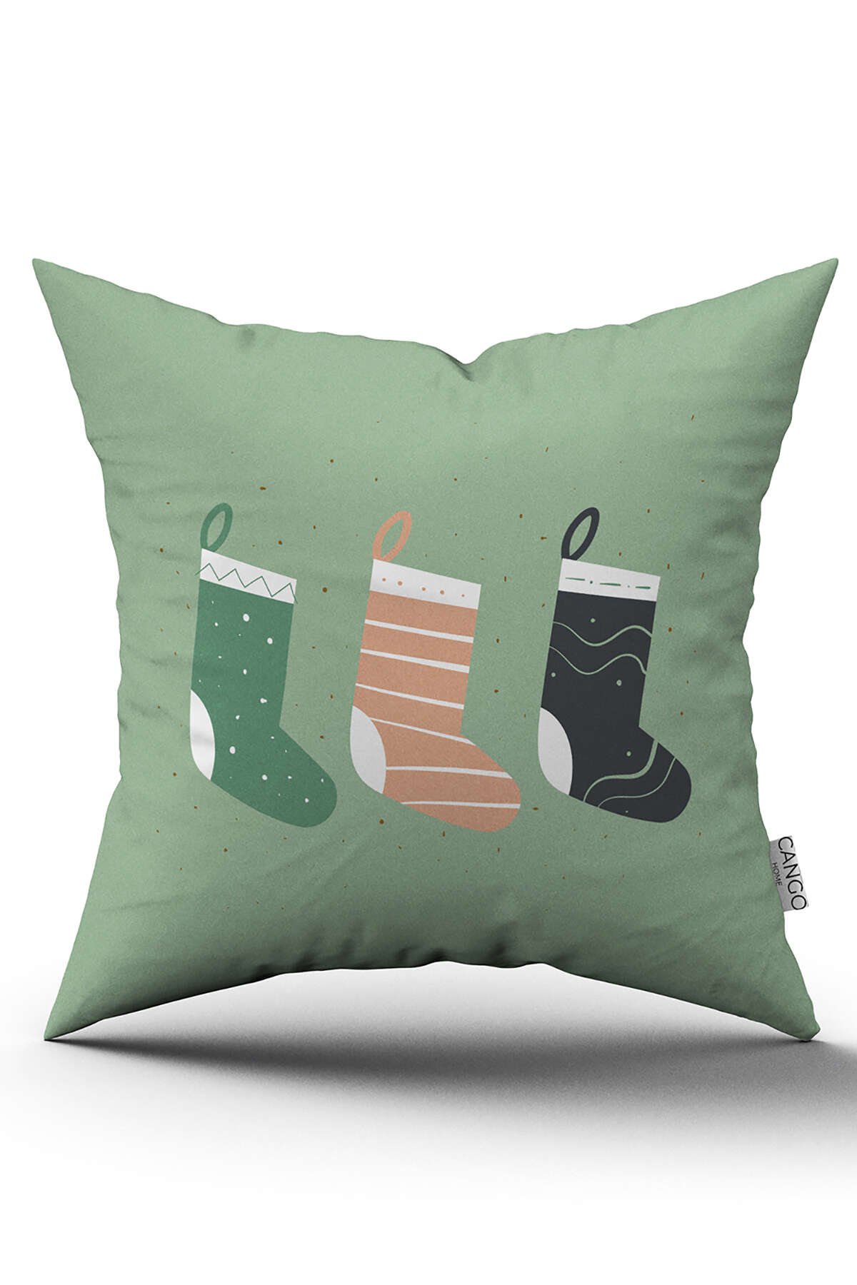 Pembe Yeşil Yılbaşı Temalı Dijital Baskılı Kırlent Kılıfı CGH868