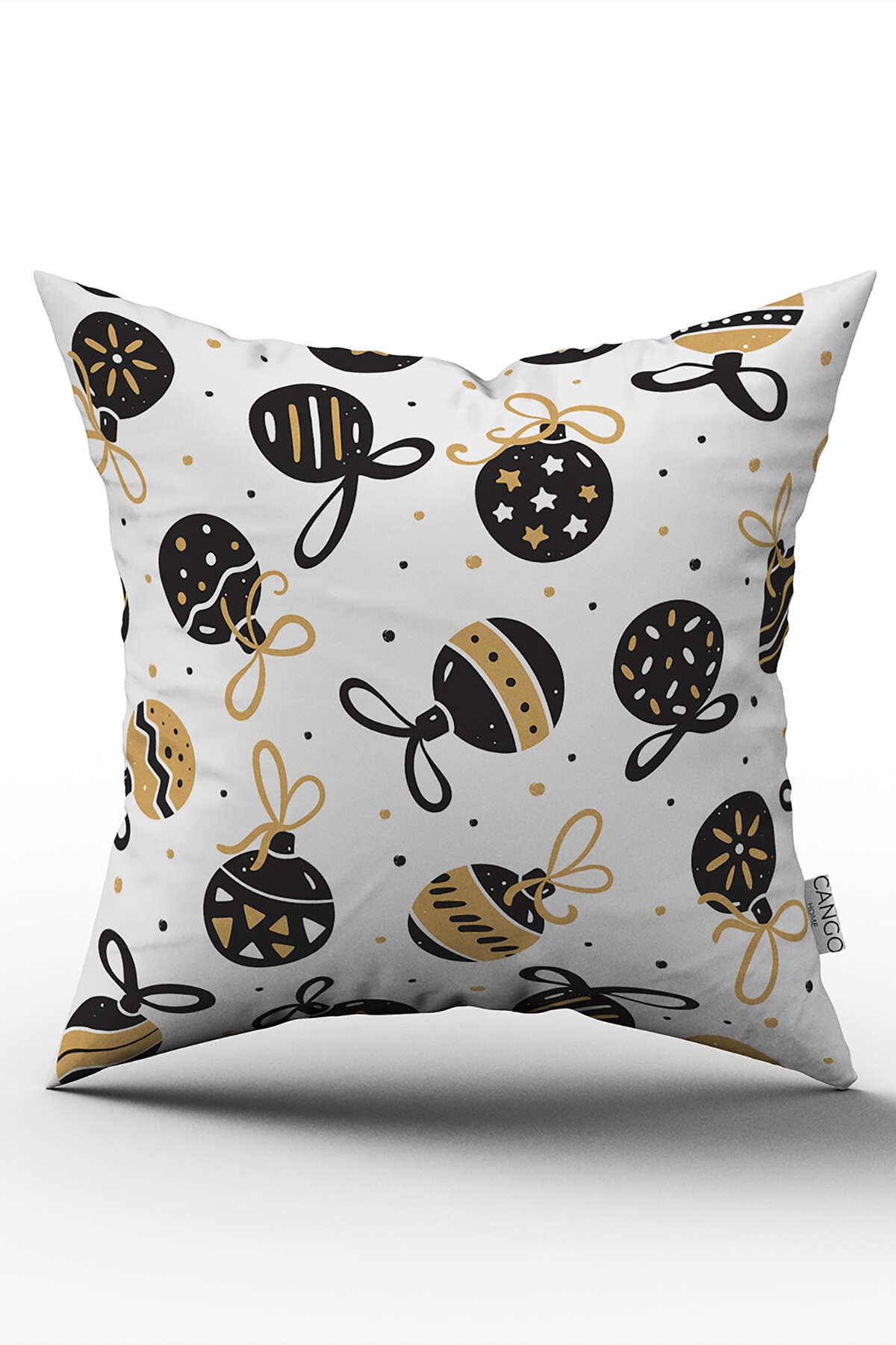 Siyah Sarı Yılbaşı Temalı Dijital Baskılı Kırlent Kılıfı CGH856