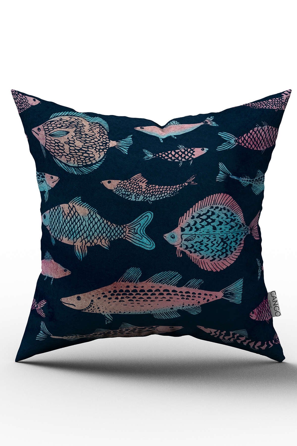 Çift Taraflı Pembe Lacivert Balık Figürlü Kırlent Yastık Kılıfı - CGH257-CT