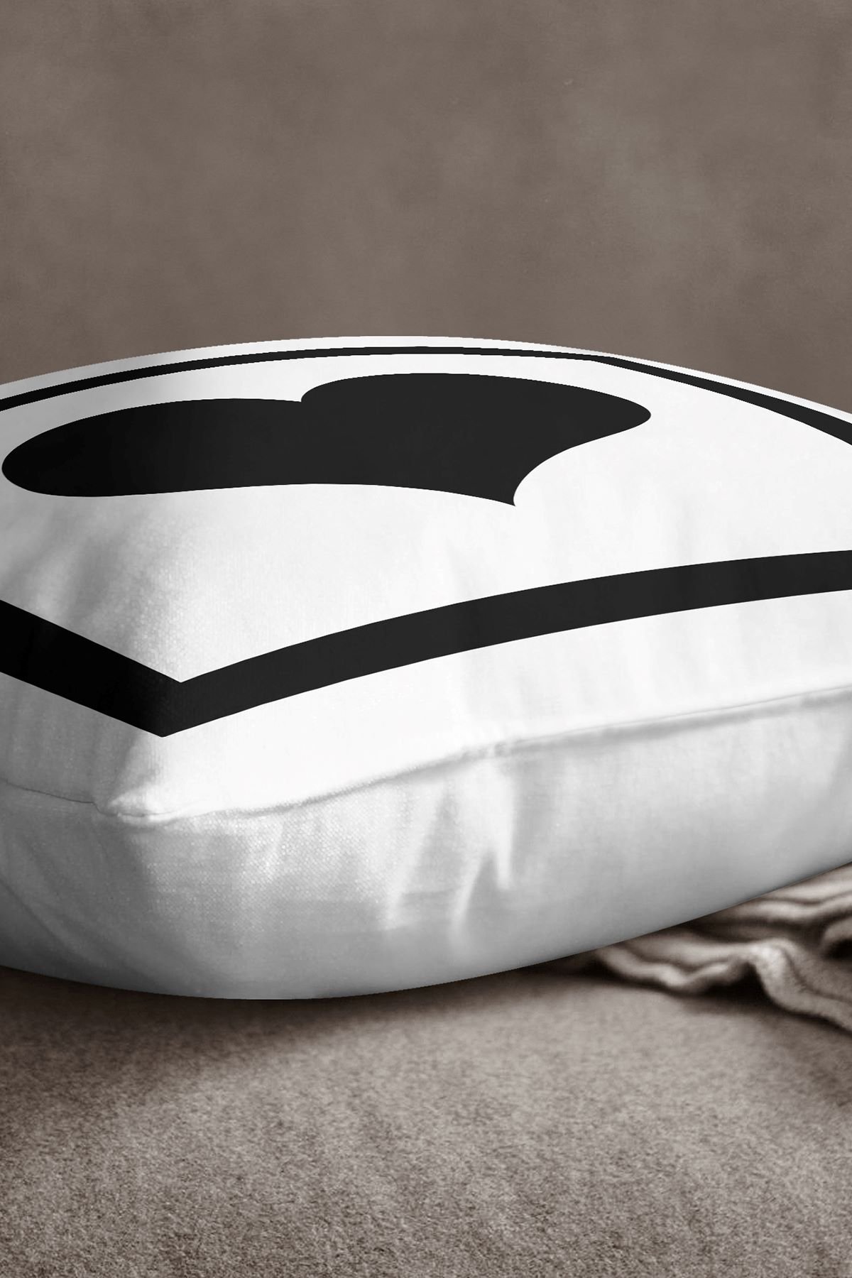Kadife Babyface Çift Tarafı Siyah Beyaz Harf Dijital Baskılı Kırlent Kılıfı - kalp