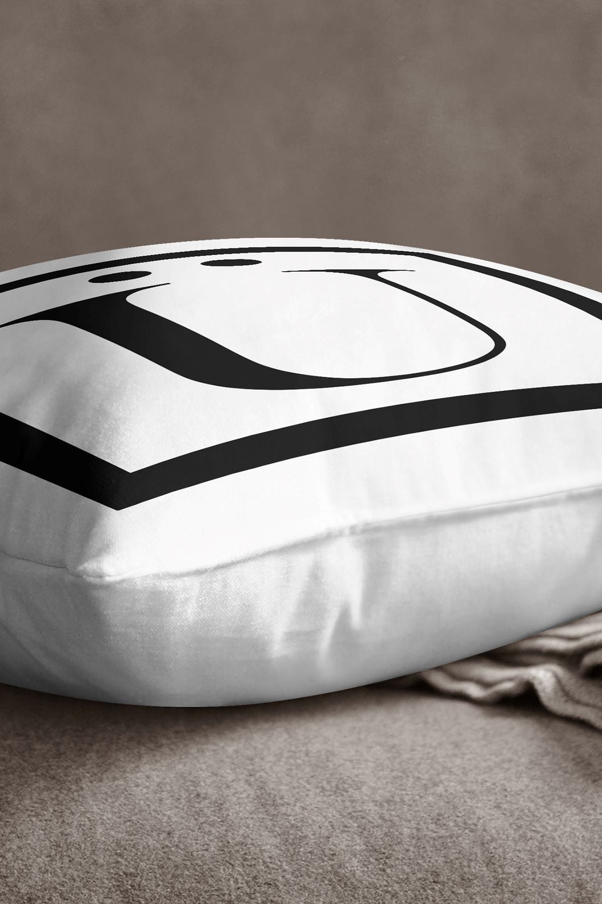 Kadife Babyface Çift Tarafı Siyah Beyaz Harf Dijital Baskılı Kırlent Kılıfı - Ü