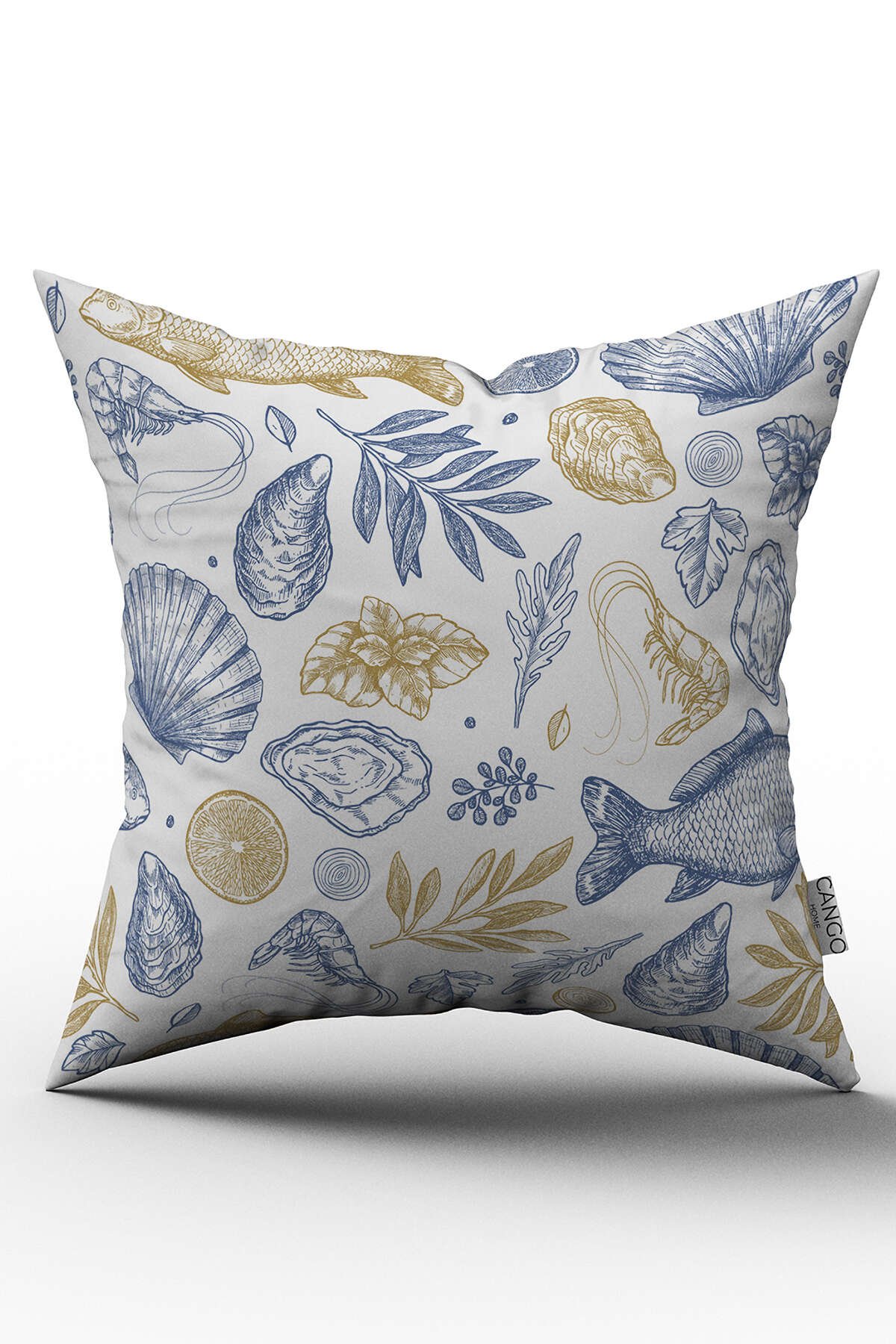 Mavi Sarı Marin Desenli Dijital Baskılı Kırlent Kılıfı  - OTYK811