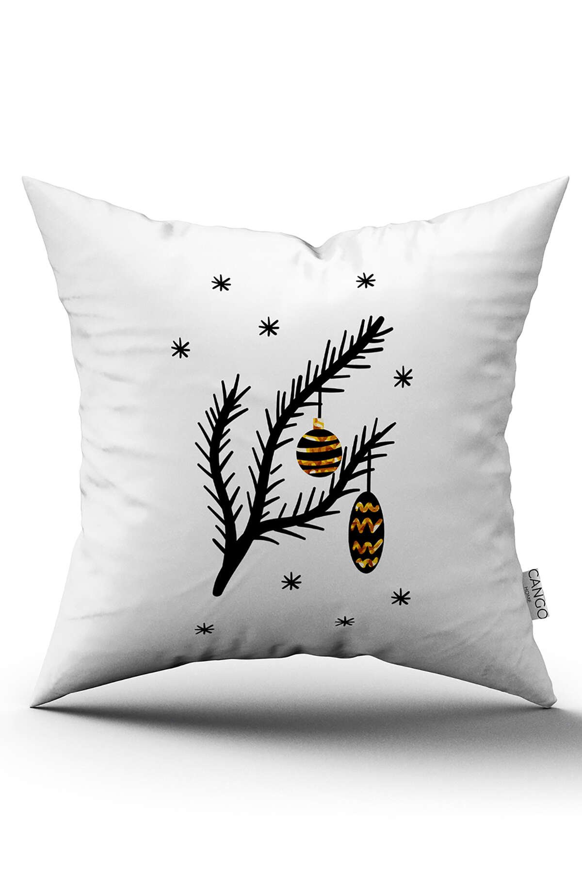 Sarı Siyah Yılbaşı Temalı Dijital Baskılı Kırlent Kılıfı CGH888