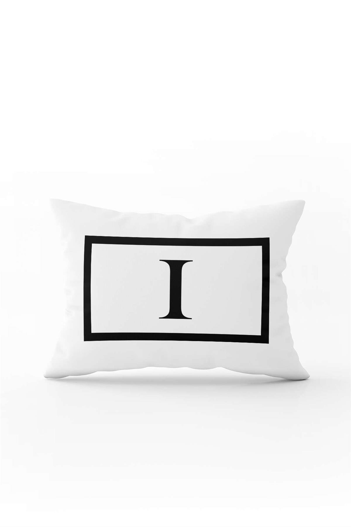 Beyaz Siyah Harfli Çift Tarafı Dijital Baskılı Kırlent Kılıfı I Harfi