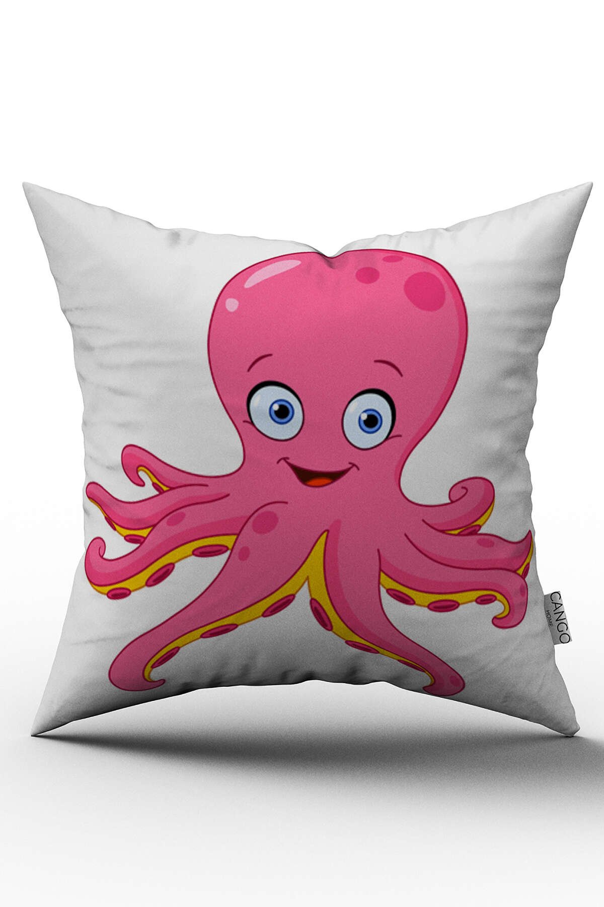 Çift Taraflı Pembe Ahtapot Figürlü Dijital Baskılı Kırlent Kılıfı - OTYK706-CT