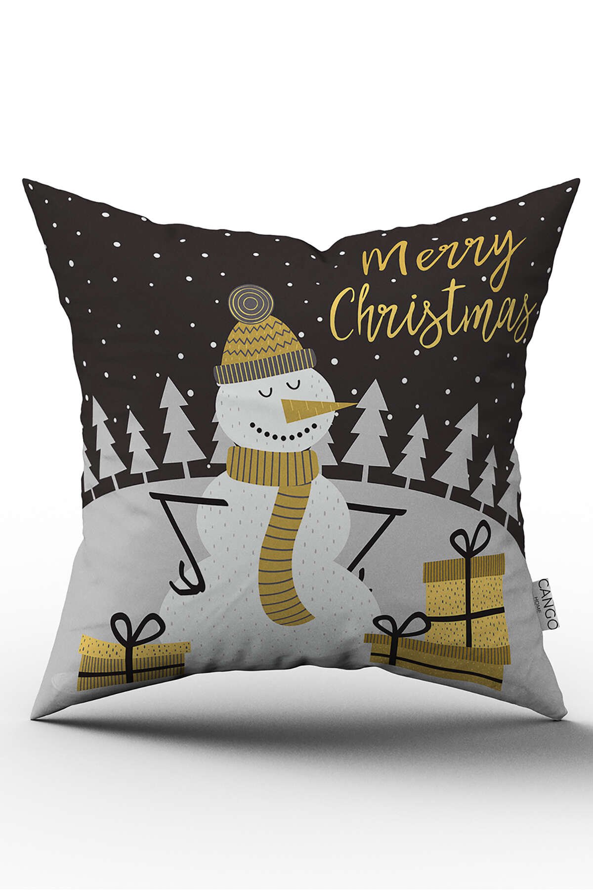 Sarı Gri Yılbaşı Temalı Dijital Baskılı Kırlent Kılıfı CGH840