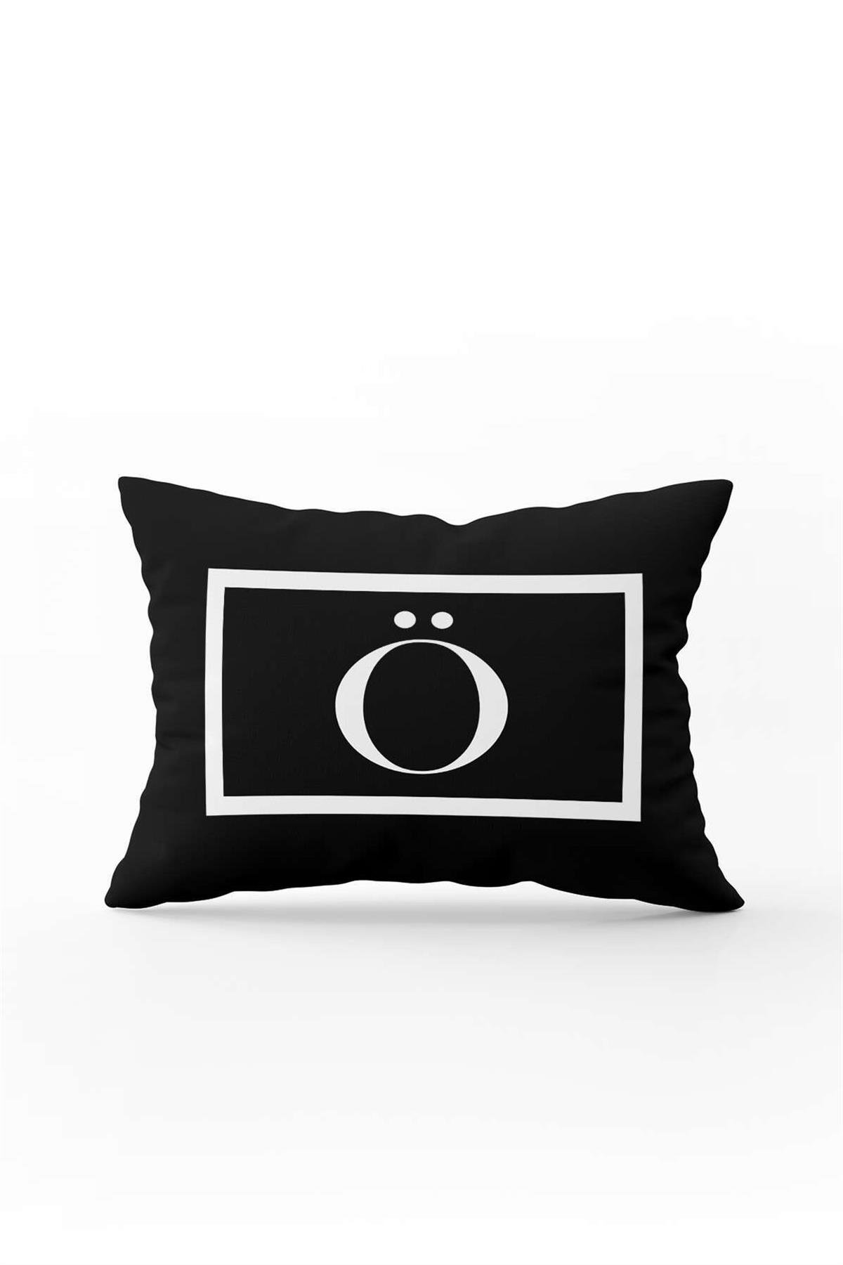 Siyah Beyaz Harfli Çift Tarafı Dijital Baskılı Kırlent Kılıfı Ö Harfi